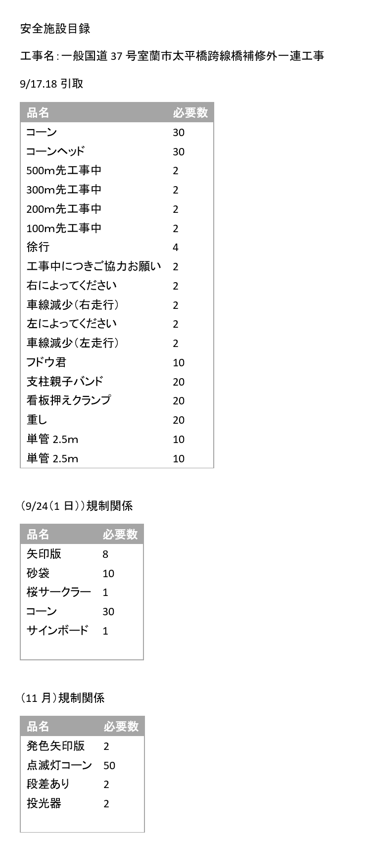 ご連絡いただいていた矢印板8枚は伊達営業所にて用意完了しておりますのでお待ちしております。
